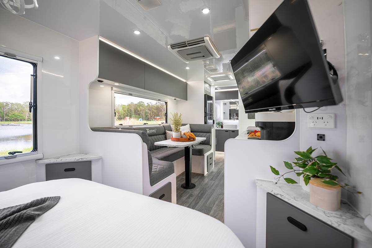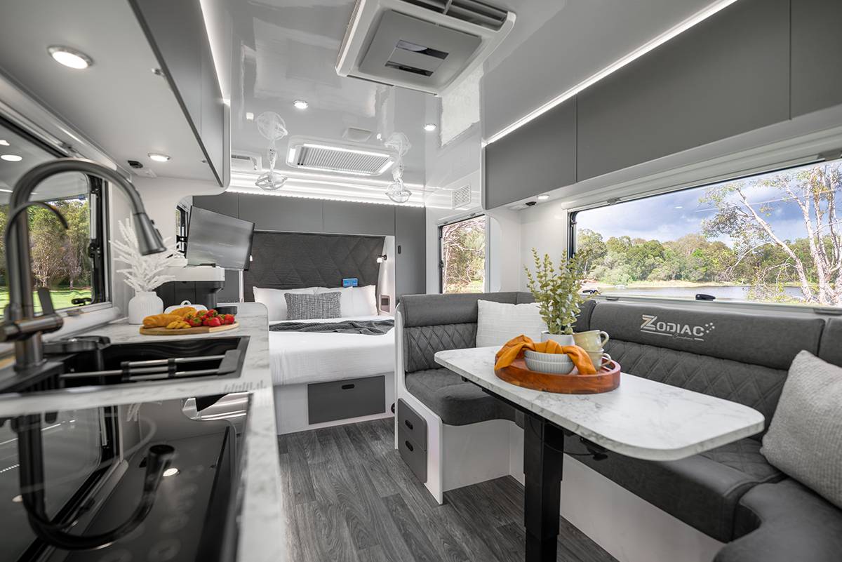 Zodiac Caravans reserves the right to modify an advertised component (eg. air conditioning unit, stove, inverter) with an item of similar value and quality, due to supply and availability.  In order to fulfill orders, all Zodiac Caravans are subject to change at Zodiac’s discretion. Errors and omissions excepted.